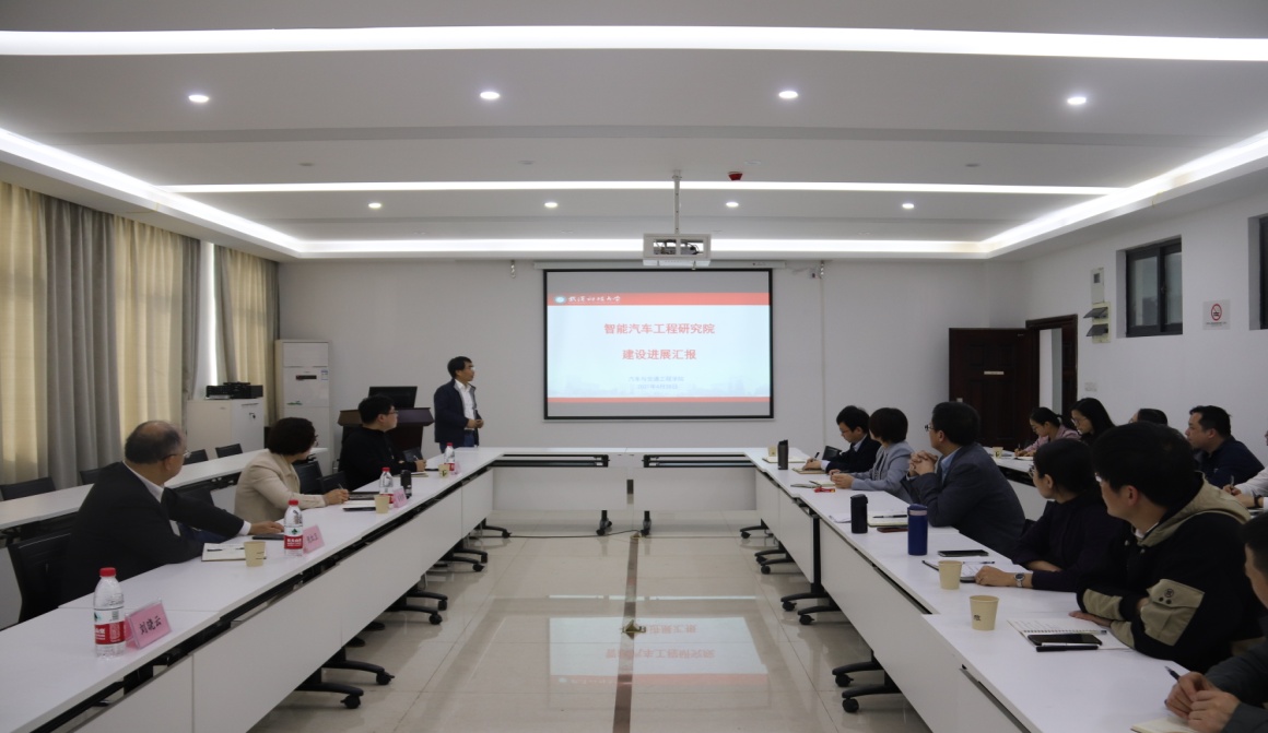 校领导听取了《动力装置技术国防研究中心工作汇报》、《智能汽车工程研究院建设进展汇报》、《车联网与智能传感器团队科研进展汇报》、《智慧交通创客中心建设方案》。龚京风、严运兵、钱枫、郝春艳四位老师分别汇报了工作进展:动力装置技术国防研究中心正在按认证要求建设 ,中心与校外两个重要研究所展开深度合作,动力装置先进CAE技术研究及推广,单车智能汽车、汽车远程监控终端+大数据监控平台、稀土催化剂整车匹配(北方稀土集团)、颗粒物传感器 、NOx传感器、NH3传感器、燃油含硫传感器 、机油/滑油品质传感器、智能轮胎/刹车检测系统研究与应用,车联网与智能传感器团队2021年3月获批省级重点人才工程一项,智慧交通创客中心建设稳步推进。同时也汇报了近期和远期存在的问题困难: 建设经费的缺口、团队中需补充相关技术人员、依据试验台架和试验基地建设扩大试验场地等。