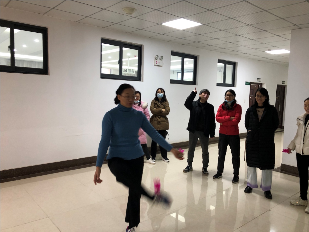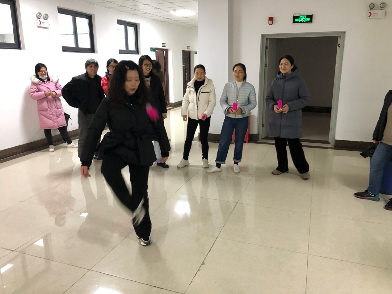 为庆祝“三八”妇女节,展现女职工靓丽风采,让女职工放松身心,度过一个健康快乐、温馨和谐的节日,2020年3月8日中午12:30,学院在教九楼楼道空地举办了“迎三八、添活力”女教职工趣味毽球活动。