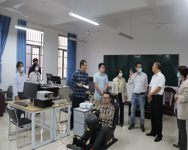 随后,倪董事长来到教九楼智能网联实验室与新能源汽车产学研联合实验室,调研了学院与中汽研(天津)汽车工程研究院合作项目,详细了解L3级自动驾驶(人机共驾)的研究和驾驶模拟设备连接dSPACE仿真平台的运行情况,听取了实验室建成智能网联在环测试场景库平台以及智能网联在环测试评价系统用例脚本开发的研究前景展望。