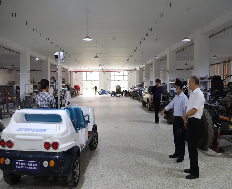 倪董事长在D栋实验大厅实地察看了汽车与交通工程实验实训中心实验实训设备和员工实验课情况,观看无人驾驶电动巡逻车研发项目试跑运行。