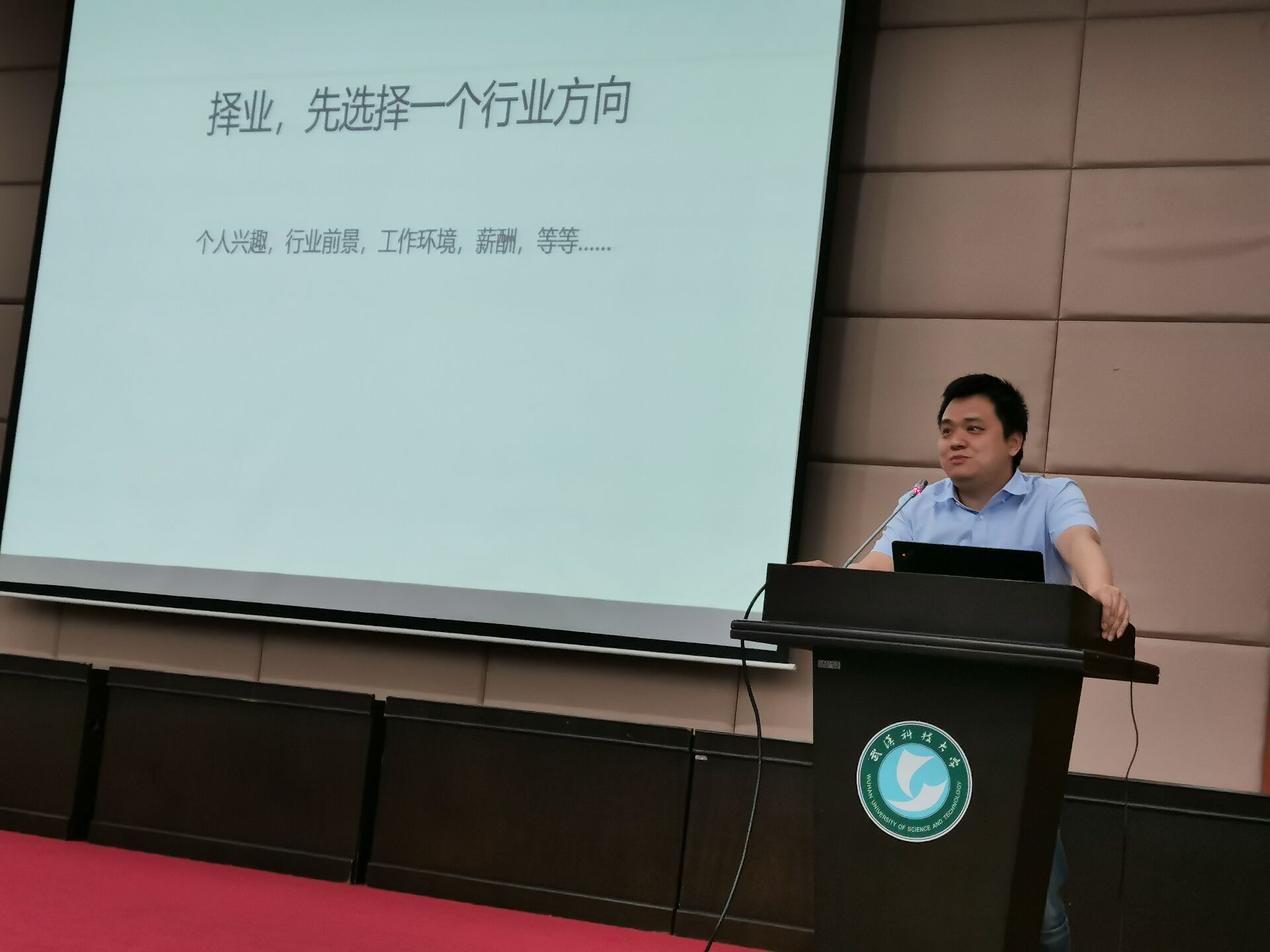 以《择业与创业》为题,谢斌就老员工择业创业给出自己的解读。对于择业,谢斌鼓励同学们要尽早选择一个目标行业,向着这个目标坚持下去并为达到目标创造条件。对于创业,谢斌建议同学们一定要积累相关经验、加强团结协作、有坚定信念,且具备自学、调整能力,“敢于奉献,舍得付出,懂得感恩,不断坚持。”